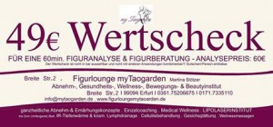 1. Die Figuranalyse und ein Erstgespräch ist der 1. Schritt auf der Reise zu Ihrer Wunschfigur, für die Sie folgenden Gutschein einlösen können.